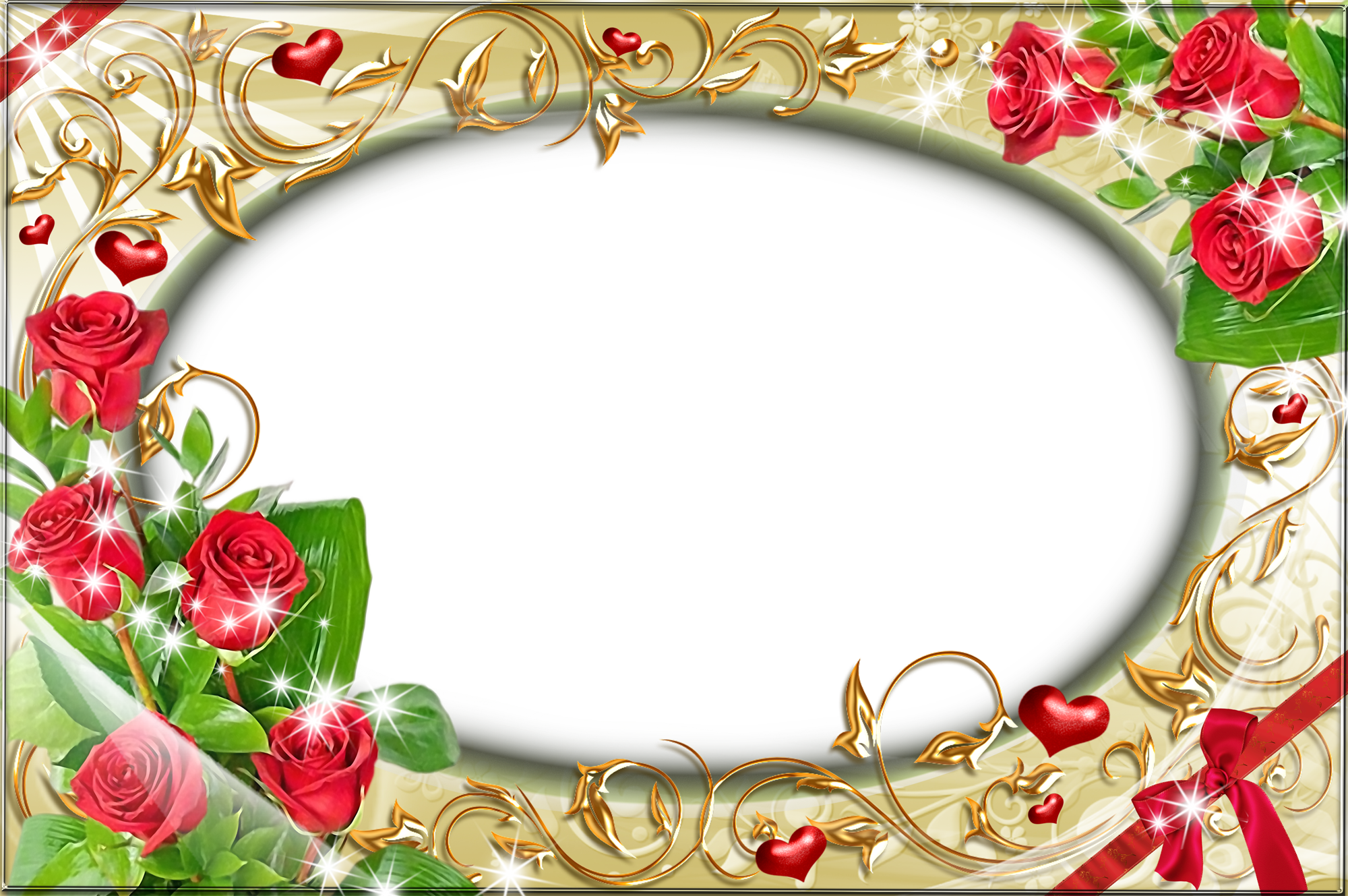 Очень красивая фотография с блестящими розами и ленточками.
