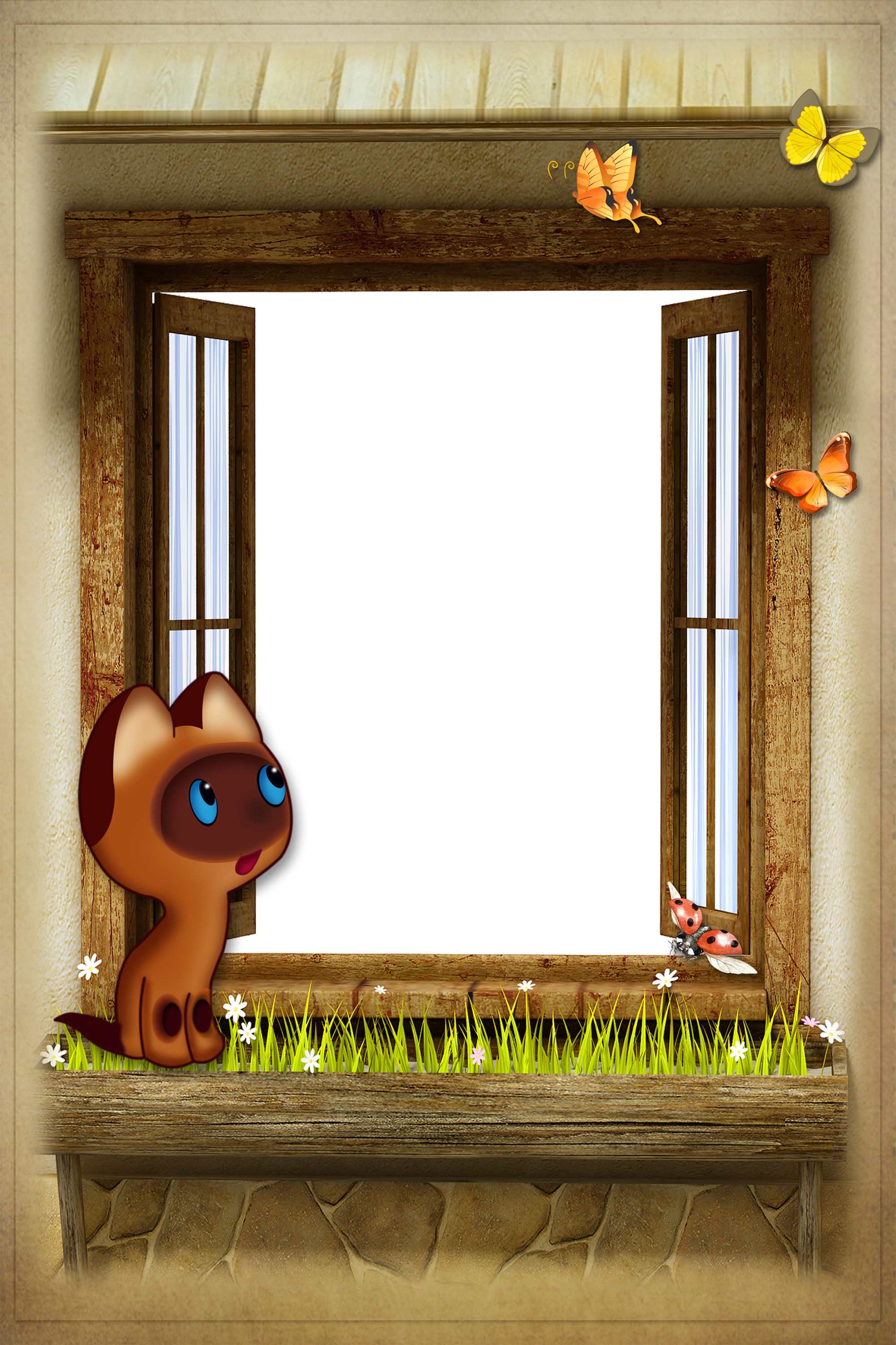 Отличная детская рамочка с котёнком и бабочками.