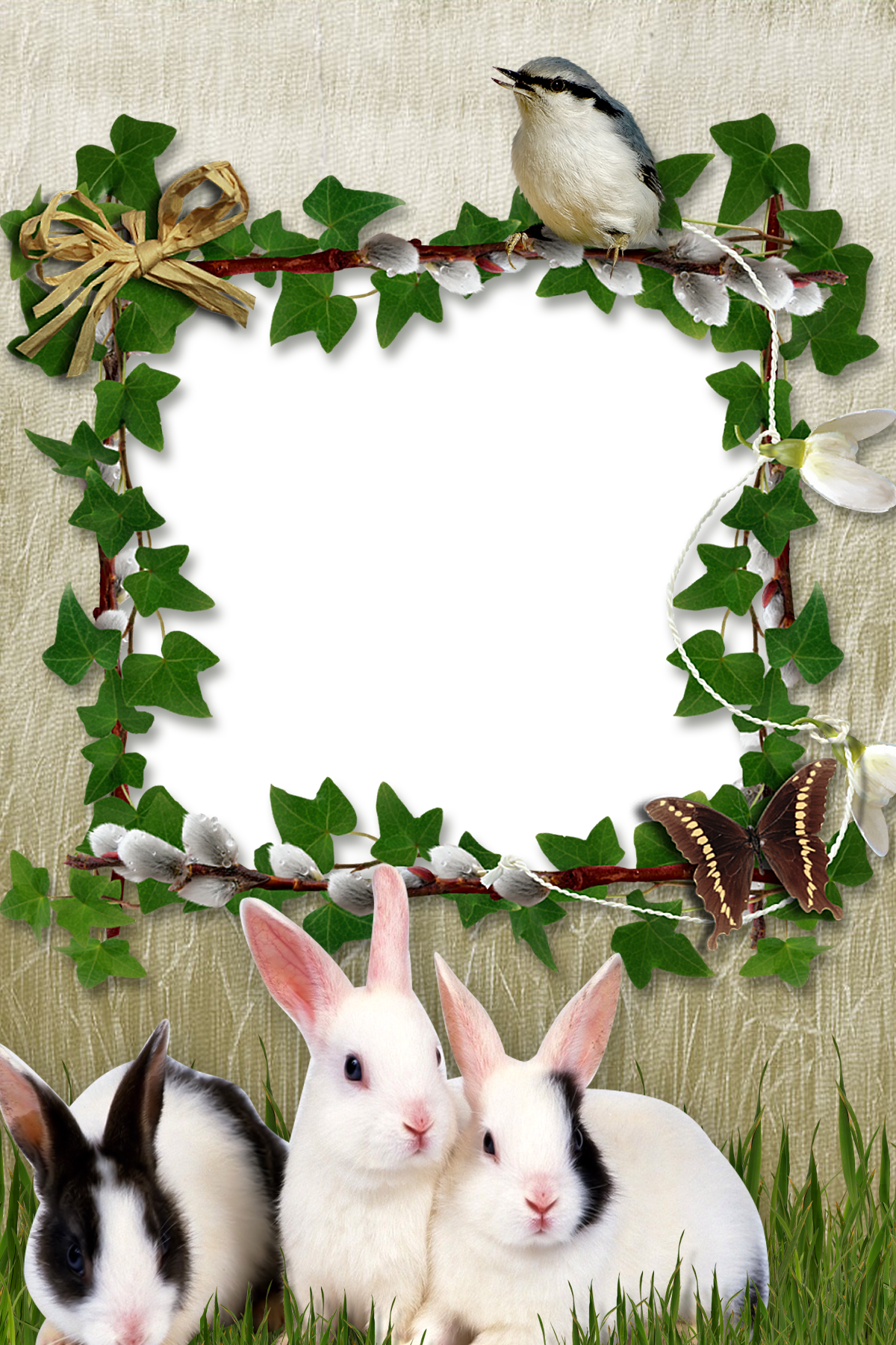 Красивая рамка с кроликами и птичкой для ваших фотографий.