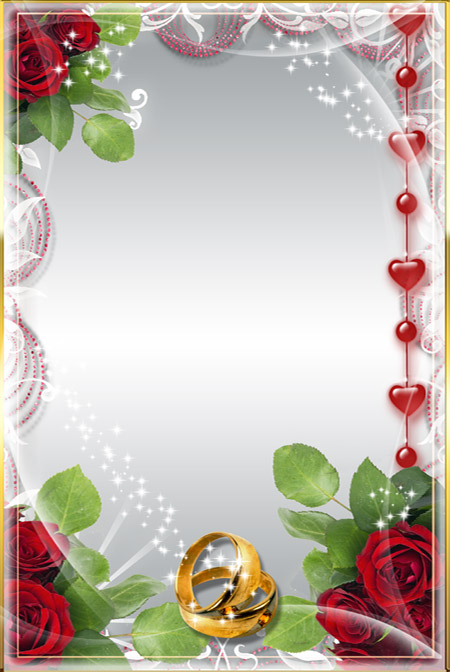 Цветочная свадебная рамка с розами, кольцами и сердечками для Ваших фото.